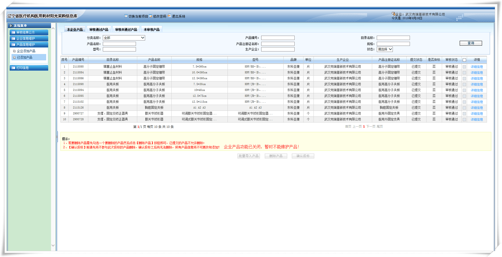 (遼寧省醫(yī)用耗材陽光采購中標(biāo)產(chǎn)品部分截圖)
